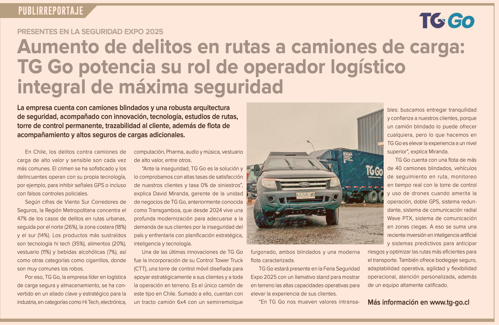 Aumento de delitos en rutas a camiones de carga: TG Go potencia su rol de operador logístico integral de máxima seguridad